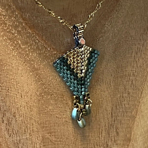 These pendants are hand made using slow-fashion techniques of weaving glass micro-beads with great care and attention, one bead at a time. This creates a timeless textile-like effect that will never go out of style!